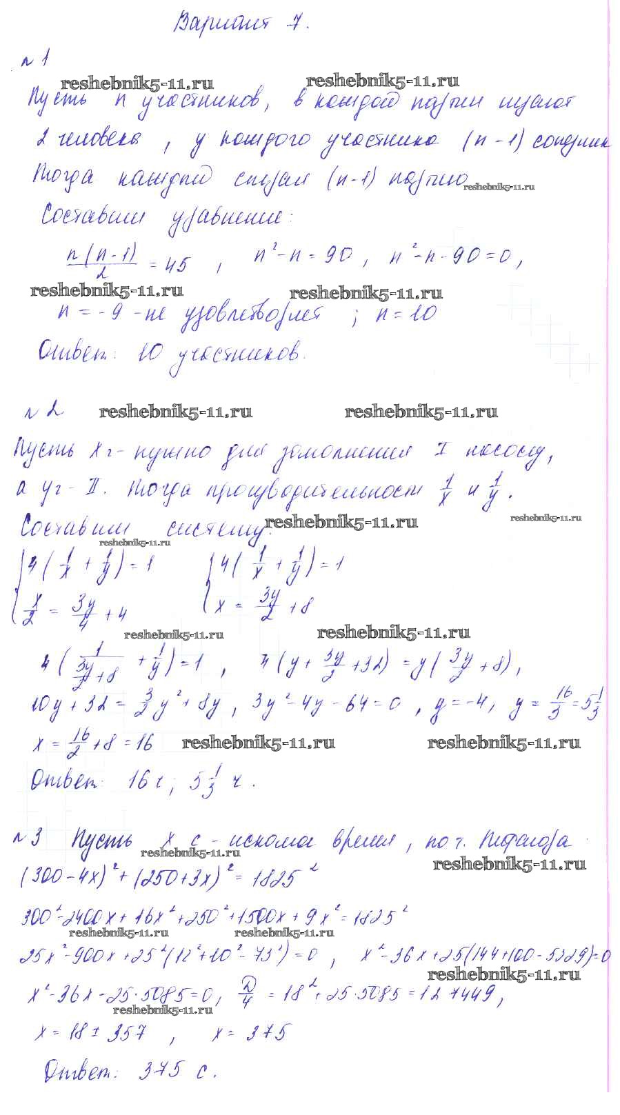 Готовая домашняя работа с ответами по Алгебре за 8 класс Зив, Гольдич Дидактические материалы Виктория плюс 2012 ФГОС - СР №13. Решение задач с помощью квадратных уравнений Вариант-7