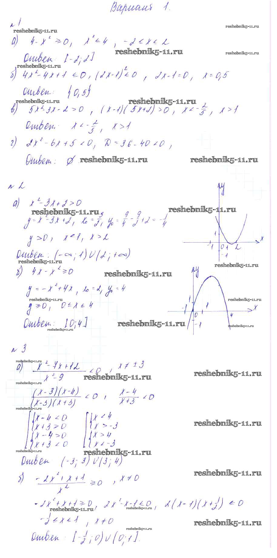 Готовая домашняя работа с ответами по Алгебре за 8 класс Зив, Гольдич Дидактические материалы Виктория плюс 2012 ФГОС - СР №16. Метод интервалов Вариант-1