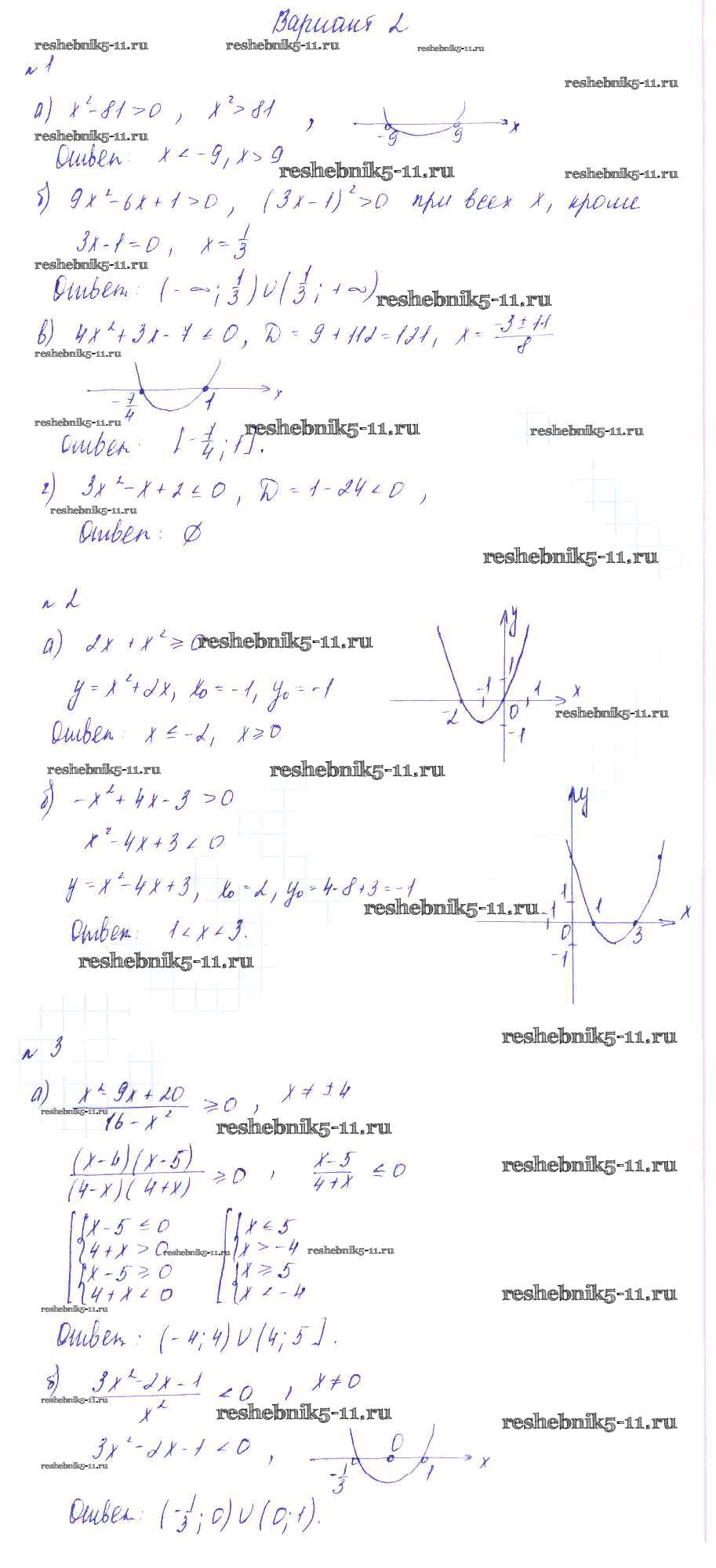 Готовая домашняя работа с ответами по Алгебре за 8 класс Зив, Гольдич Дидактические материалы Виктория плюс 2012 ФГОС - СР №16. Метод интервалов Вариант-2