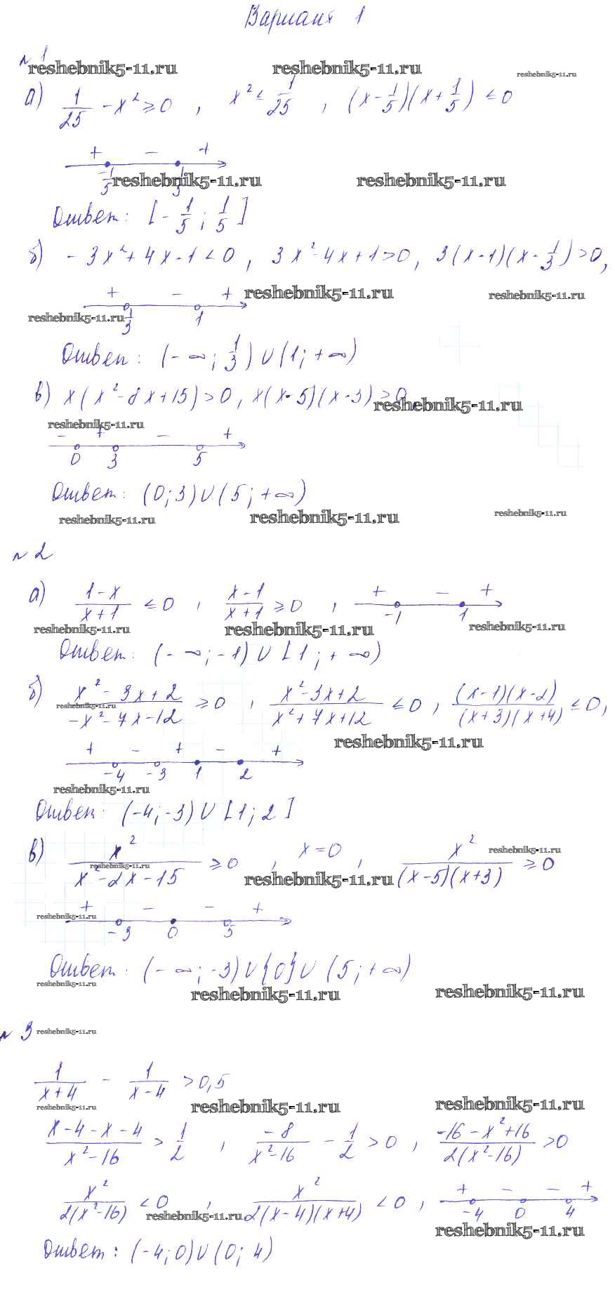 КР №1. Неравенства. Варианты