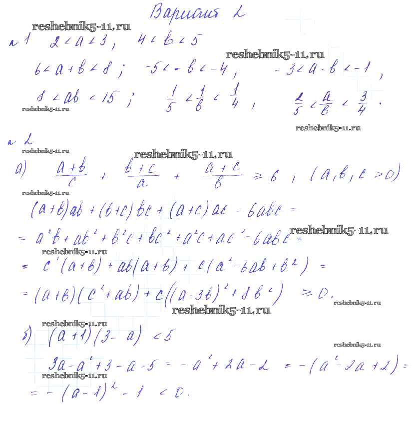 Готовая домашняя работа с ответами по Алгебре за 8 класс Зив, Гольдич Дидактические материалы Виктория плюс 2012 ФГОС - СР №2. Свойства числовых неравенств. Сложение и умножение неравенств Вариант-2
