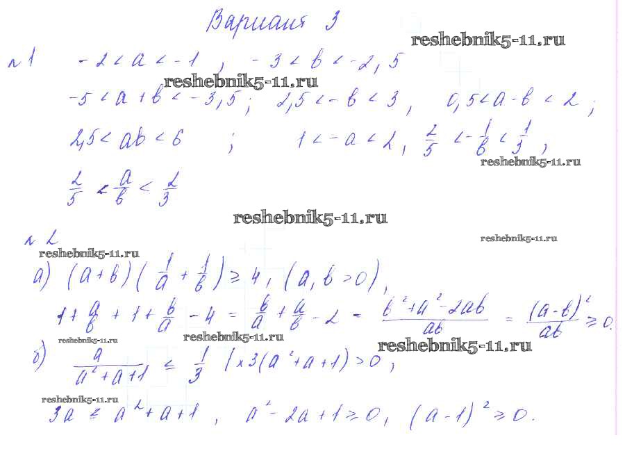 Готовая домашняя работа с ответами по Алгебре за 8 класс Зив, Гольдич Дидактические материалы Виктория плюс 2012 ФГОС - СР №2. Свойства числовых неравенств. Сложение и умножение неравенств Вариант-3