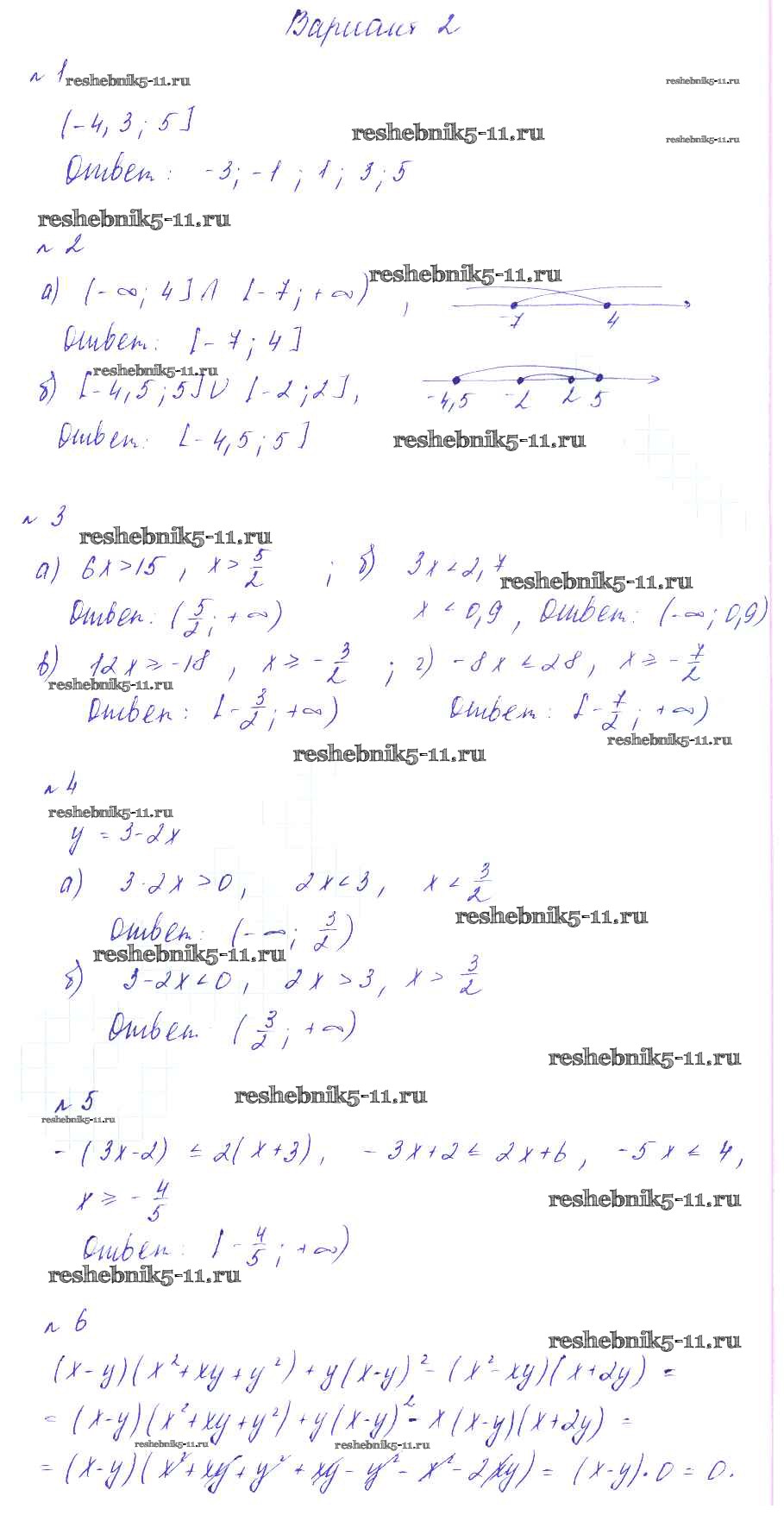 Готовая домашняя работа с ответами по Алгебре за 8 класс Зив, Гольдич Дидактические материалы Виктория плюс 2012 ФГОС - СР №3. Решение неравенств. Числовые промежутки Вариант-2