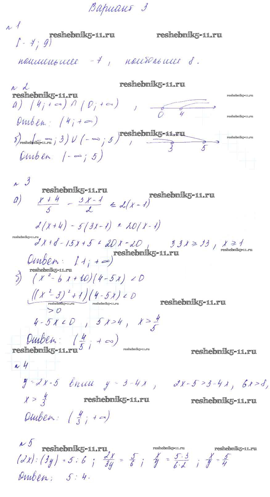 Готовая домашняя работа с ответами по Алгебре за 8 класс Зив, Гольдич Дидактические материалы Виктория плюс 2012 ФГОС - СР №3. Решение неравенств. Числовые промежутки Вариант-3