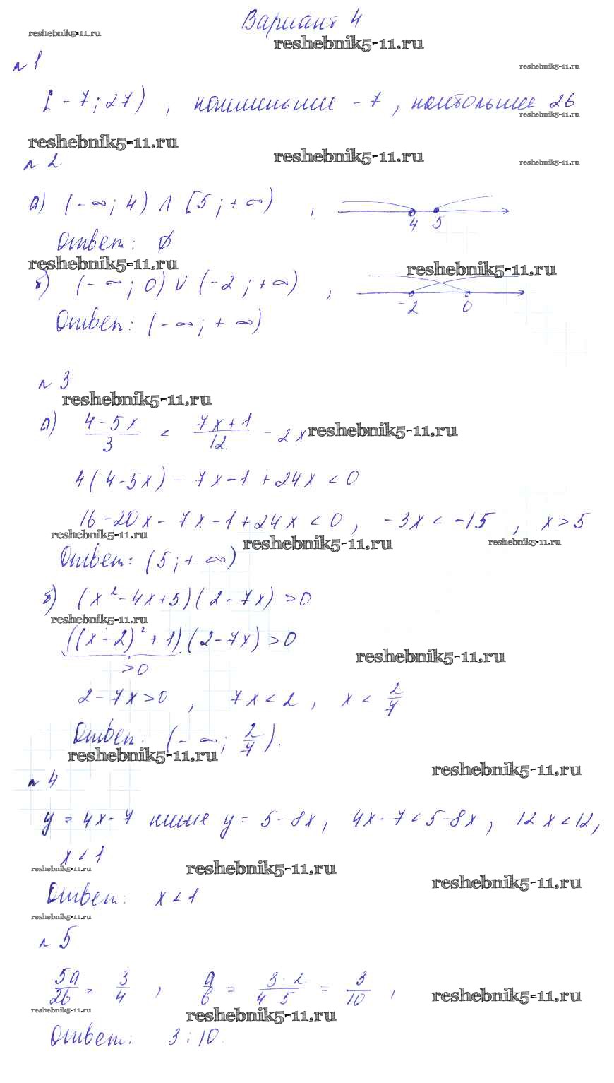 Готовая домашняя работа с ответами по Алгебре за 8 класс Зив, Гольдич Дидактические материалы Виктория плюс 2012 ФГОС - СР №3. Решение неравенств. Числовые промежутки Вариант-4