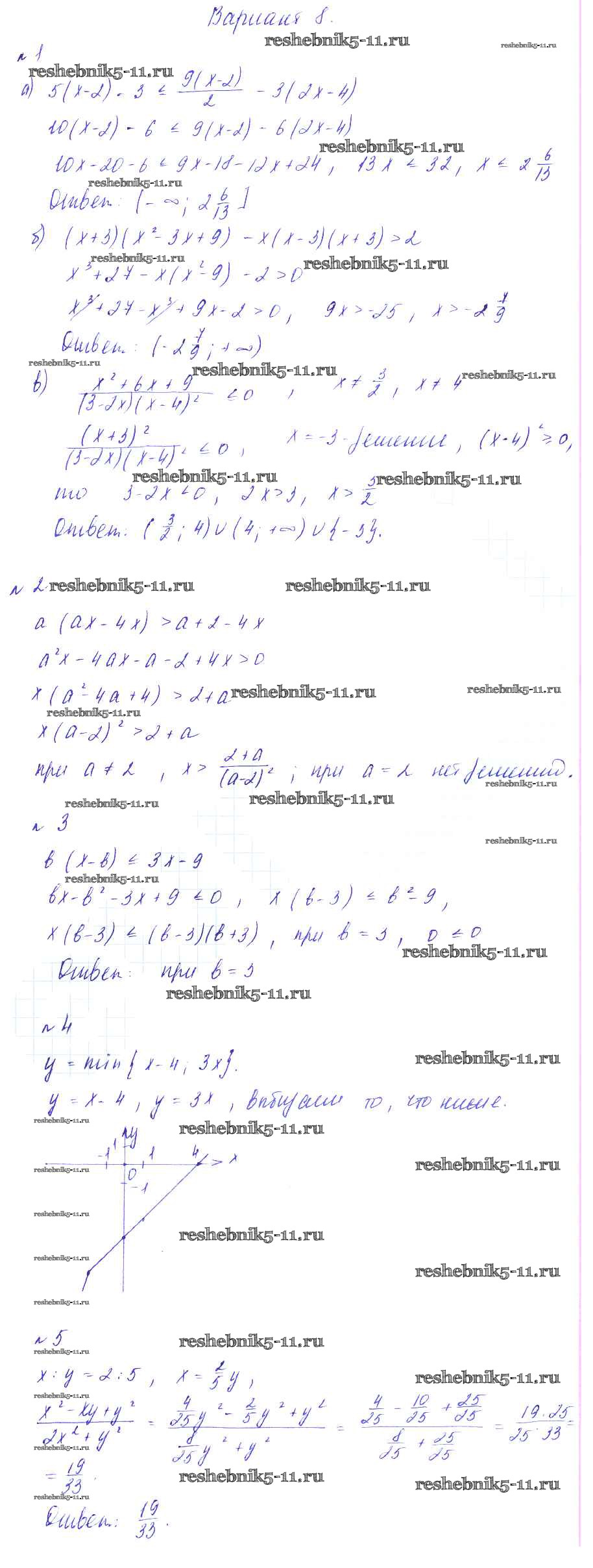 Готовая домашняя работа с ответами по Алгебре за 8 класс Зив, Гольдич Дидактические материалы Виктория плюс 2012 ФГОС - СР №3. Решение неравенств. Числовые промежутки Вариант-8