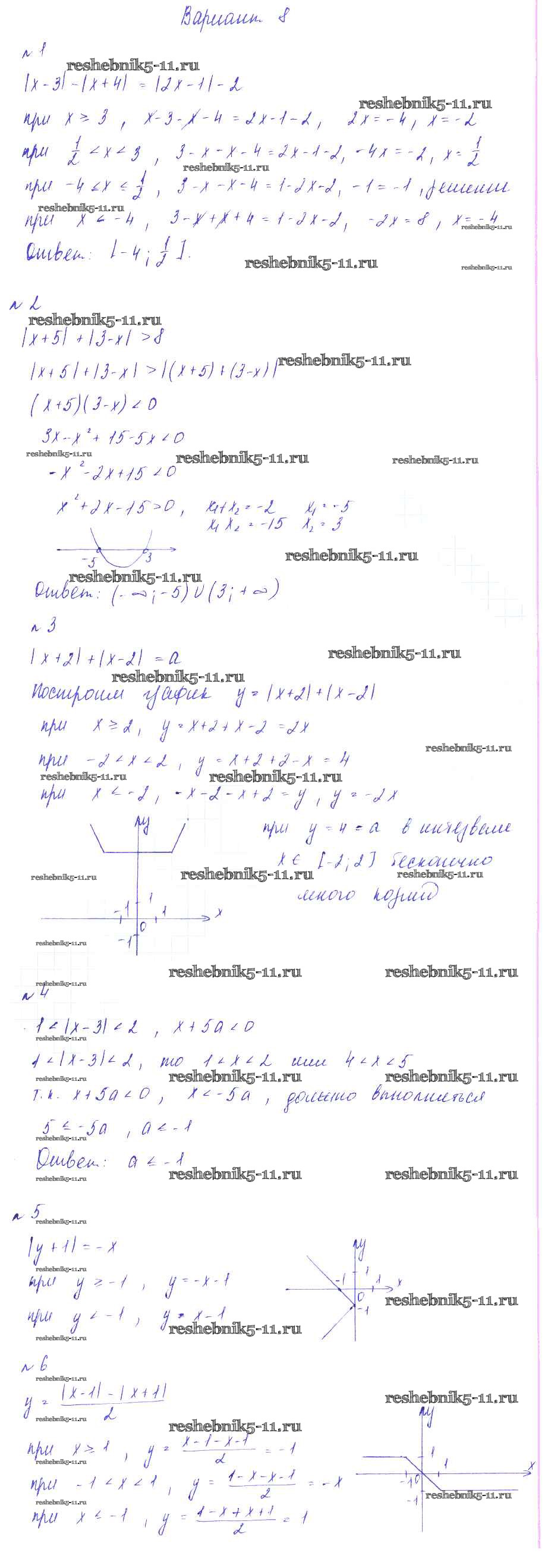 Готовая домашняя работа с ответами по Алгебре за 8 класс Зив, Гольдич Дидактические материалы Виктория плюс 2012 ФГОС - СР №5.Модуль числа. Уравнения и неравенства, содержащие модуль Вариант-8