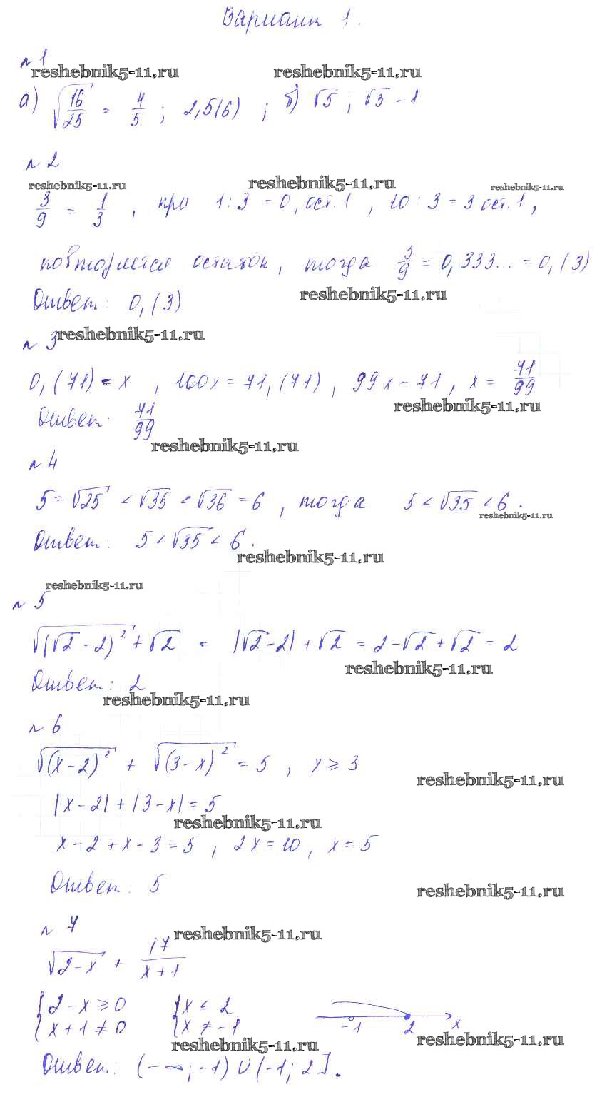 Готовая домашняя работа с ответами по Алгебре за 8 класс Зив, Гольдич Дидактические материалы Виктория плюс 2012 ФГОС - СР №6. Действительные числа. Арифметический квадратный корень Вариант-1