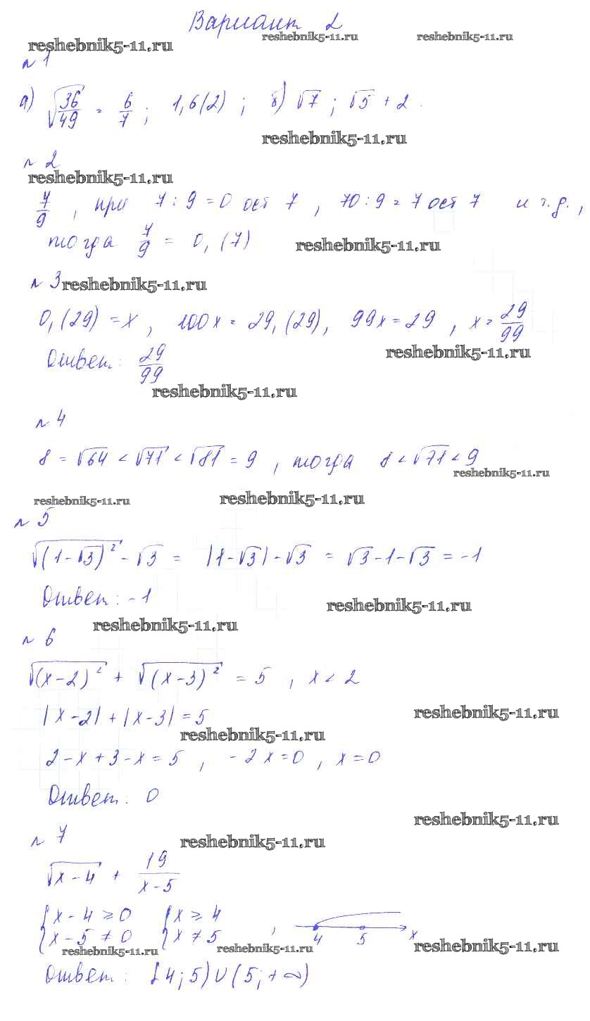 Готовая домашняя работа с ответами по Алгебре за 8 класс Зив, Гольдич Дидактические материалы Виктория плюс 2012 ФГОС - СР №6. Действительные числа. Арифметический квадратный корень Вариант-2
