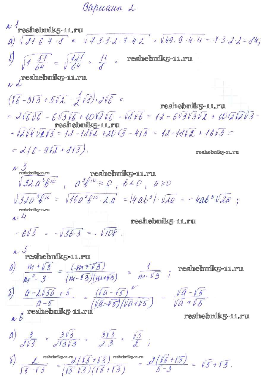 Готовая домашняя работа с ответами по Алгебре за 8 класс Зив, Гольдич Дидактические материалы Виктория плюс 2012 ФГОС - СР №7. Квадратный корень из произведения и дроби Вариант-2