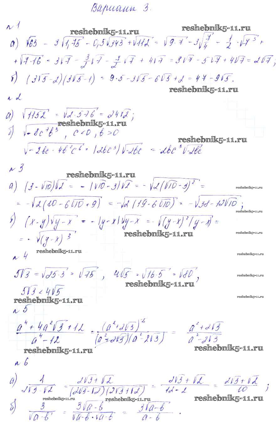 Готовая домашняя работа с ответами по Алгебре за 8 класс Зив, Гольдич Дидактические материалы Виктория плюс 2012 ФГОС - СР №7. Квадратный корень из произведения и дроби Вариант-3