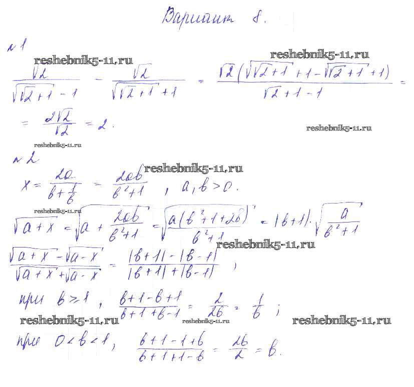 Готовая домашняя работа с ответами по Алгебре за 8 класс Зив, Гольдич Дидактические материалы Виктория плюс 2012 ФГОС - СР №8. Упражнения на все действия с арифметическими корнями Вариант-8