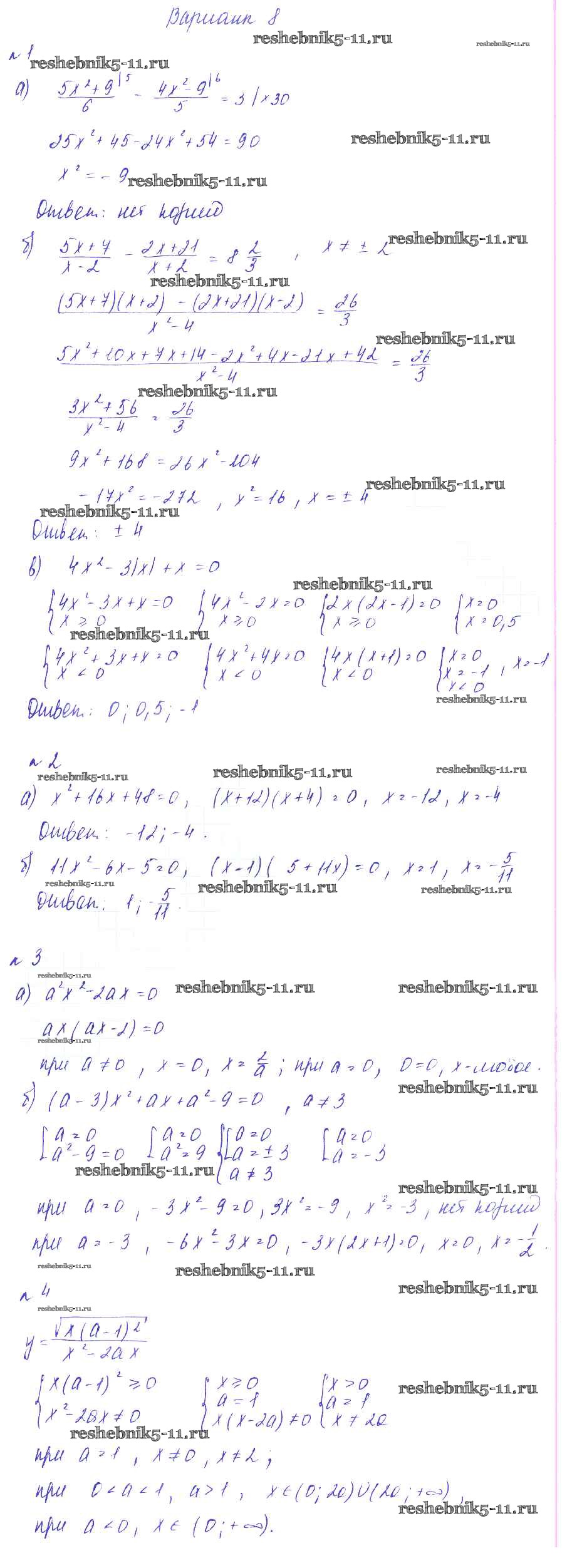 Готовая домашняя работа с ответами по Алгебре за 8 класс Зив, Гольдич Дидактические материалы Виктория плюс 2012 ФГОС - СР №9. Неполные квадратные уравнения Вариант-8