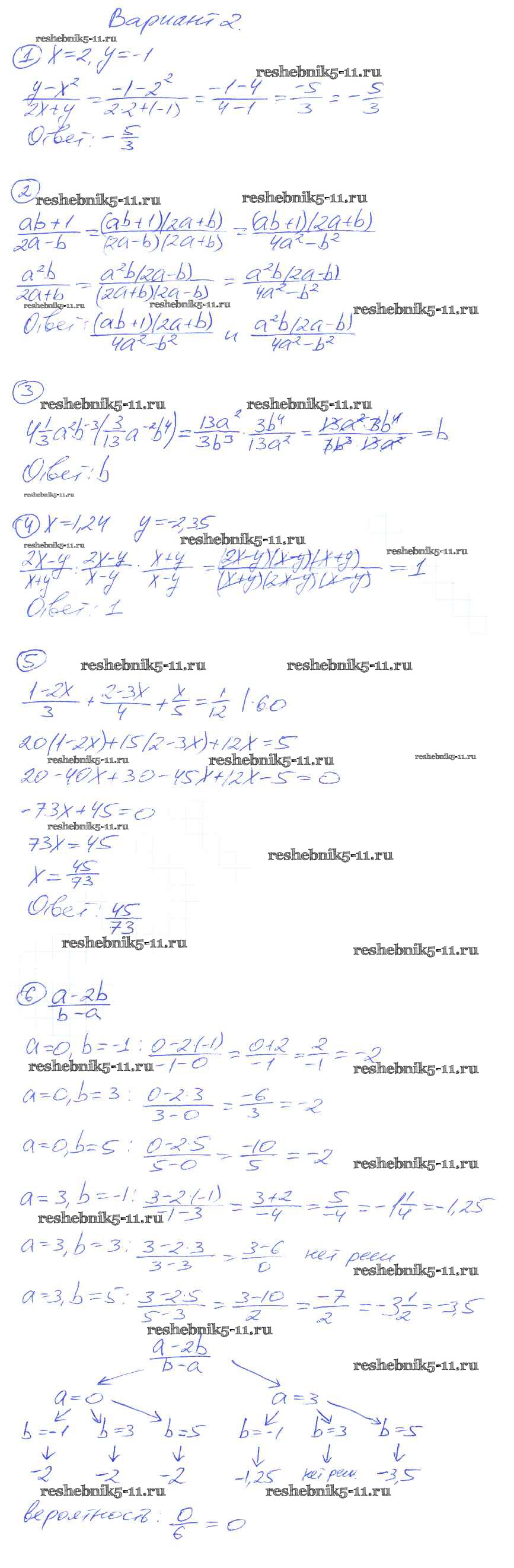 Готовая домашняя работа с ответами по Алгебре за 8 класс Попов Дидактические материалы УМК Экзамен 2014 ФГОС - КР-1. Алгебраические дроби вариант-2