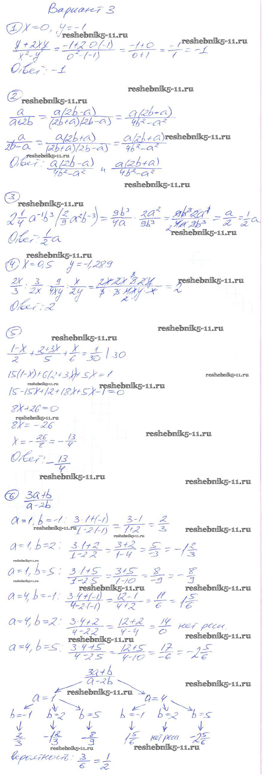 Готовая домашняя работа с ответами по Алгебре за 8 класс Попов Дидактические материалы УМК Экзамен 2014 ФГОС - КР-1. Алгебраические дроби вариант-3