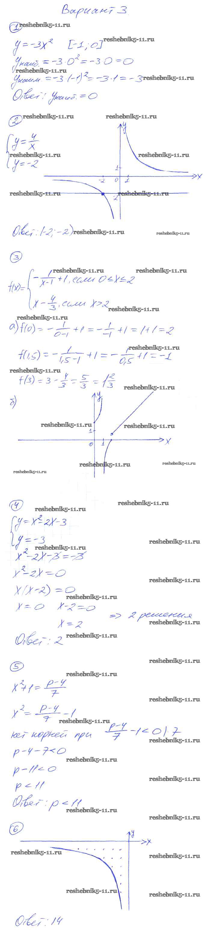 Готовая домашняя работа с ответами по Алгебре за 8 класс Попов Дидактические материалы УМК Экзамен 2014 ФГОС - КР-3. Квадратичная функция. Функция y = k:x вариант-3