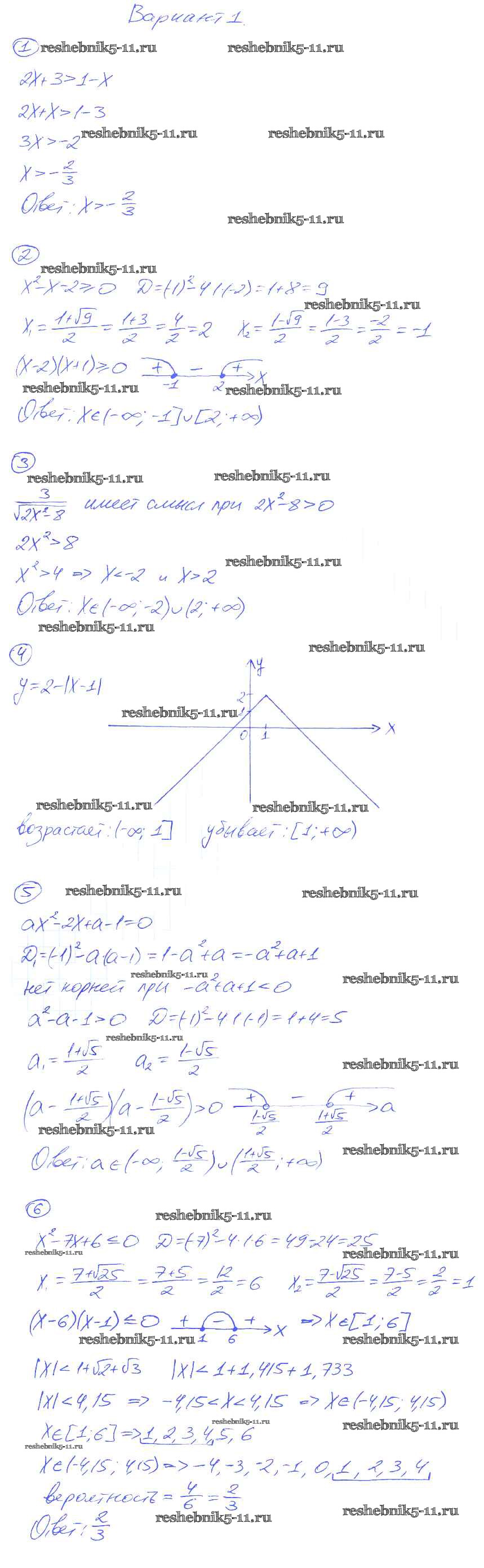 Готовая домашняя работа с ответами по Алгебре за 8 класс Попов Дидактические материалы УМК Экзамен 2014 ФГОС - КР-5. Неравенства вариант-1