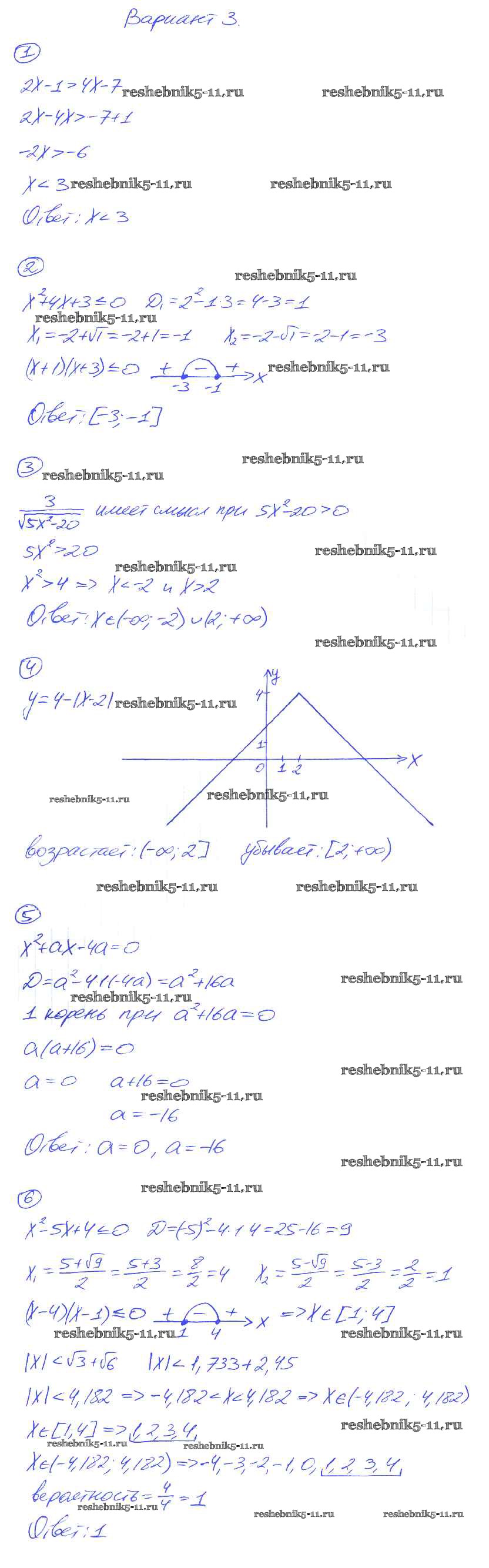 Готовая домашняя работа с ответами по Алгебре за 8 класс Попов Дидактические материалы УМК Экзамен 2014 ФГОС - КР-5. Неравенства вариант-3