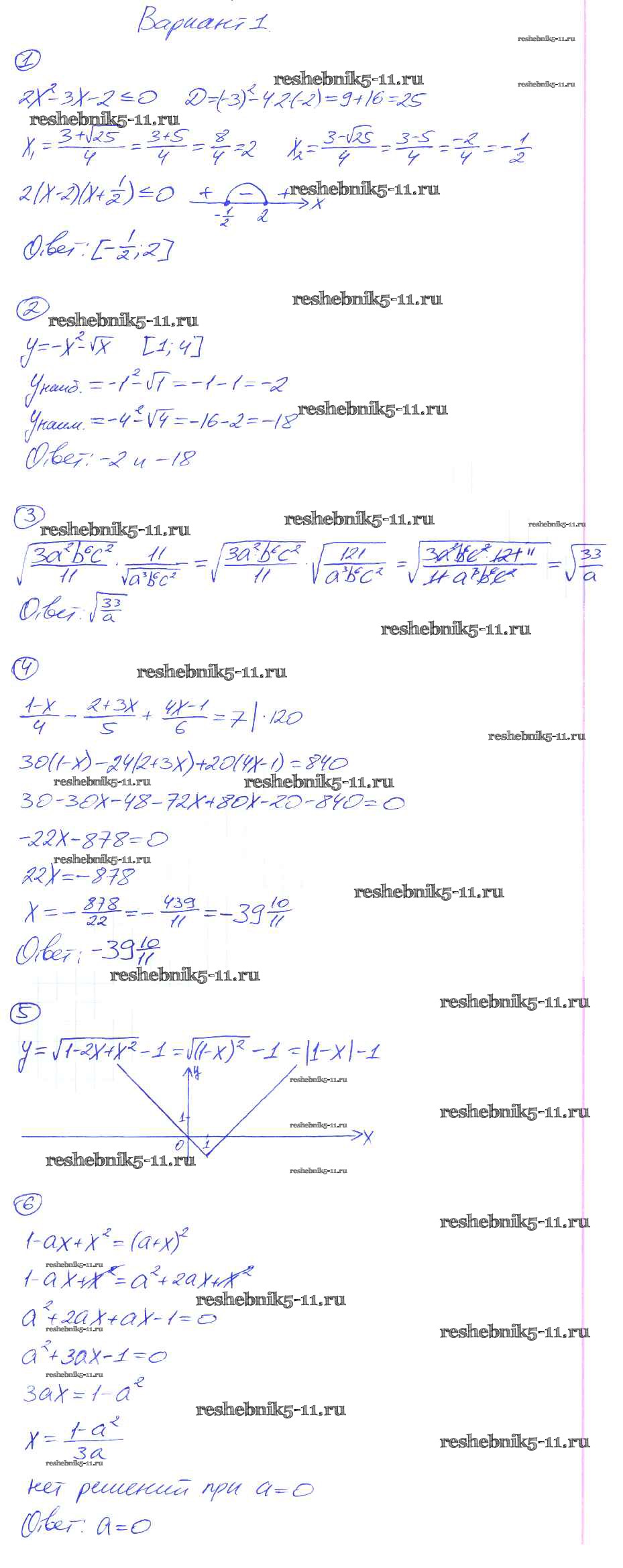 Готовая домашняя работа с ответами по Алгебре за 8 класс Попов Дидактические материалы УМК Экзамен 2014 ФГОС - КР-7. Итоговая вариант-1