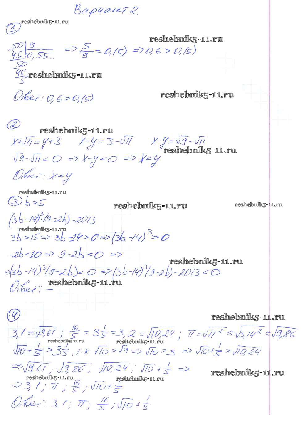 Готовая домашняя работа с ответами по Алгебре за 8 класс Попов Дидактические материалы УМК Экзамен 2014 ФГОС - СР-12. Множество действительных чисел вариант-2