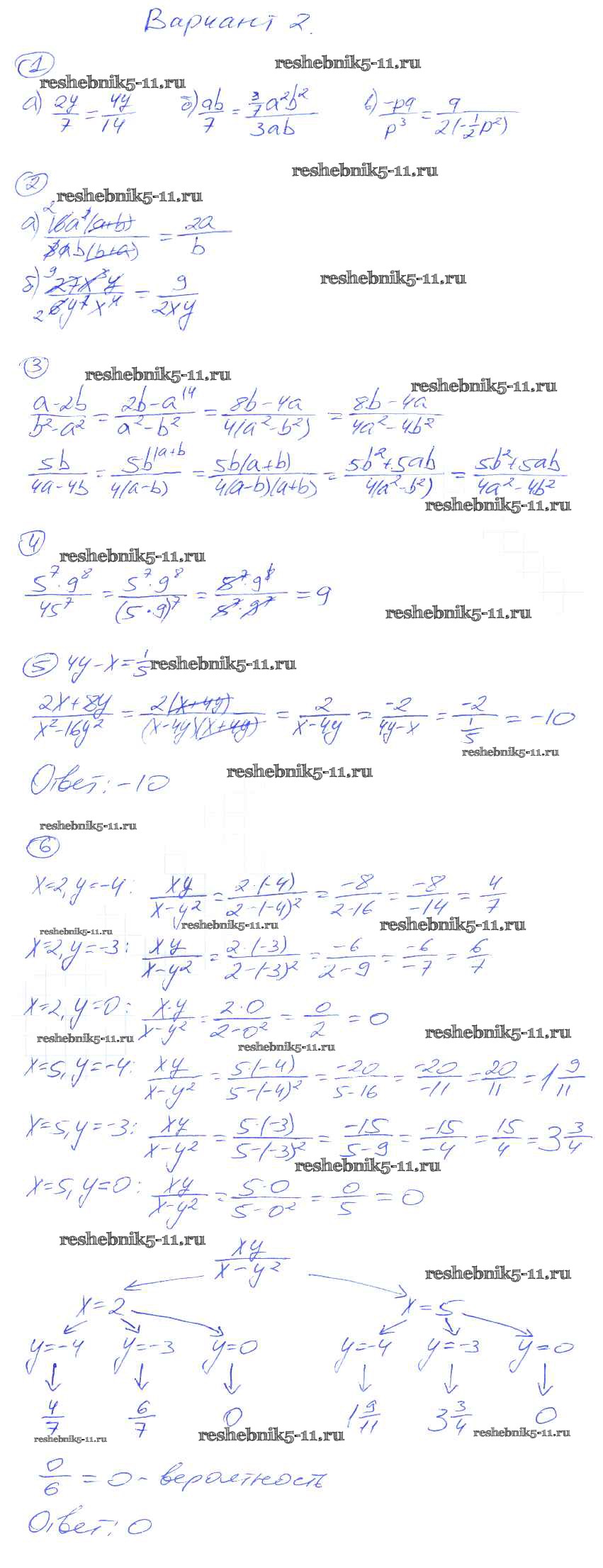 Готовая домашняя работа с ответами по Алгебре за 8 класс Попов Дидактические материалы УМК Экзамен 2014 ФГОС - СР-2. Основное свойство алгебраической дроби вариант-2