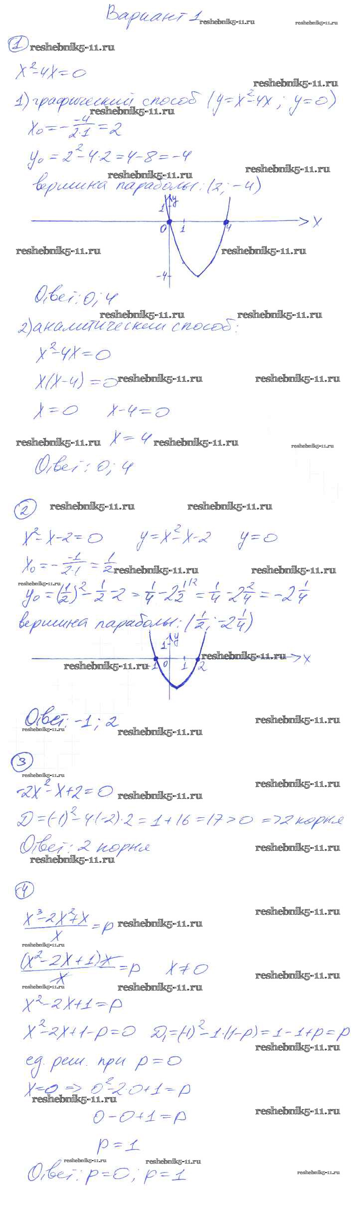 Готовая домашняя работа с ответами по Алгебре за 8 класс Попов Дидактические материалы УМК Экзамен 2014 ФГОС - СР-23. Графическое решение квадратных уравнений вариант-1