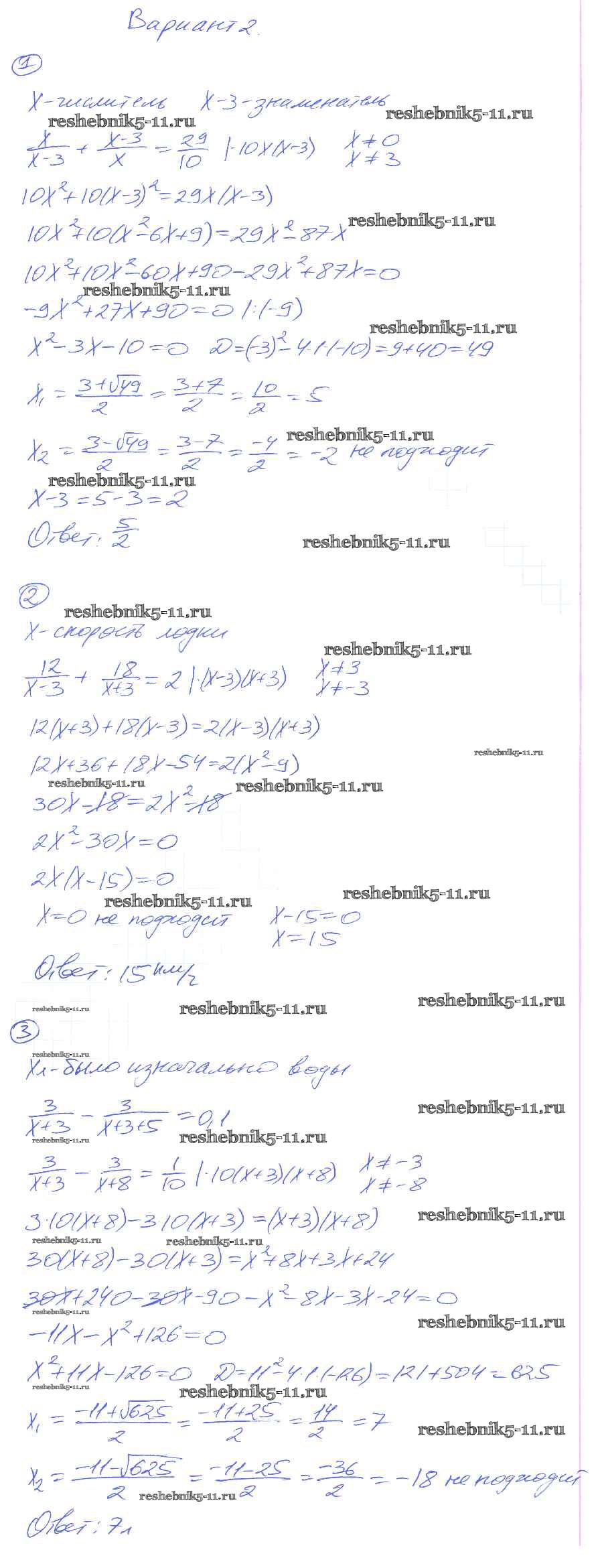 Готовая домашняя работа с ответами по Алгебре за 8 класс Попов Дидактические материалы УМК Экзамен 2014 ФГОС - СР-27. Рациональные уравнения как математические модели реальных ситуаций вариант-2