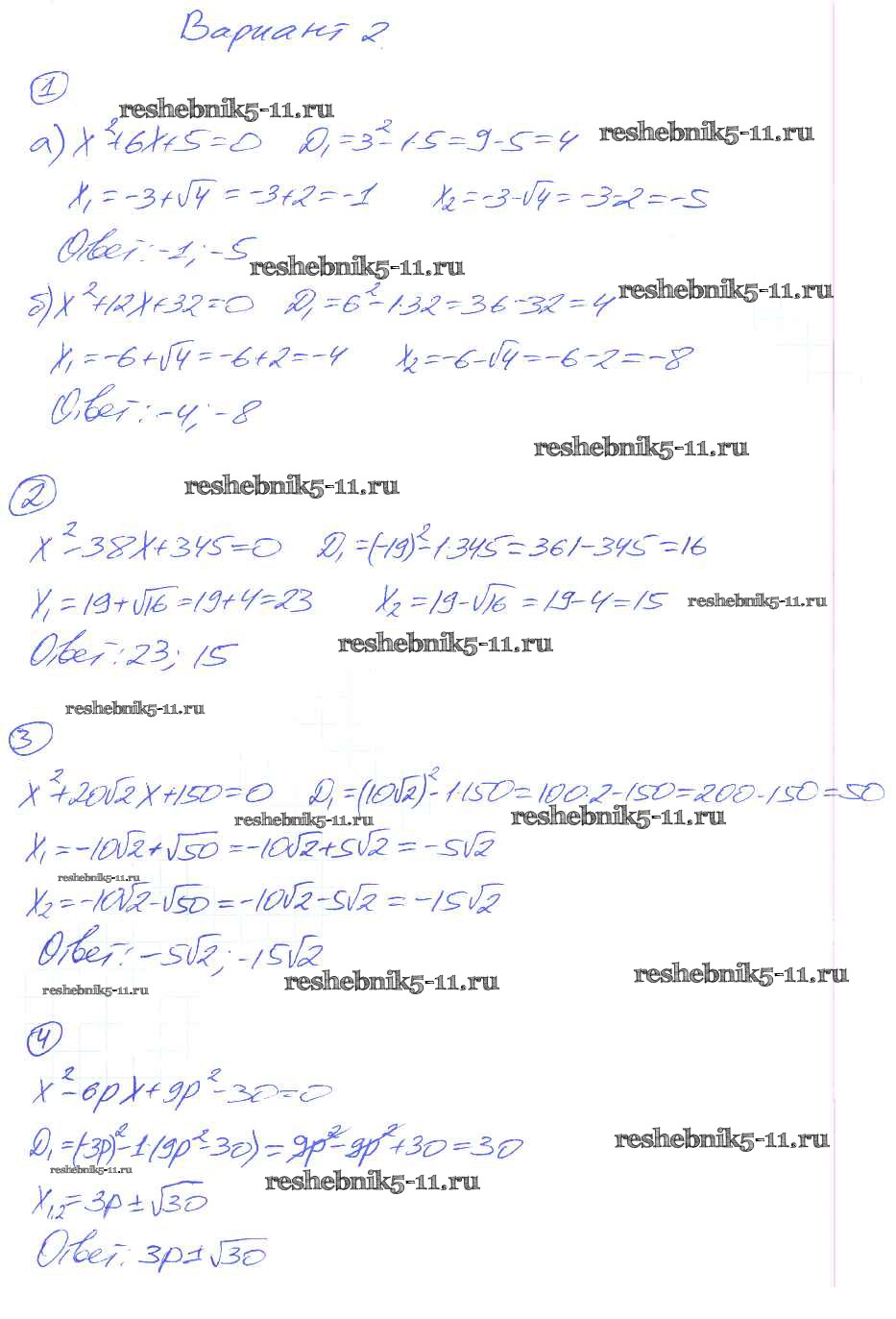 Готовая домашняя работа с ответами по Алгебре за 8 класс Попов Дидактические материалы УМК Экзамен 2014 ФГОС - СР-28. Ещё одна формула корней квадратного уравнения вариант-2