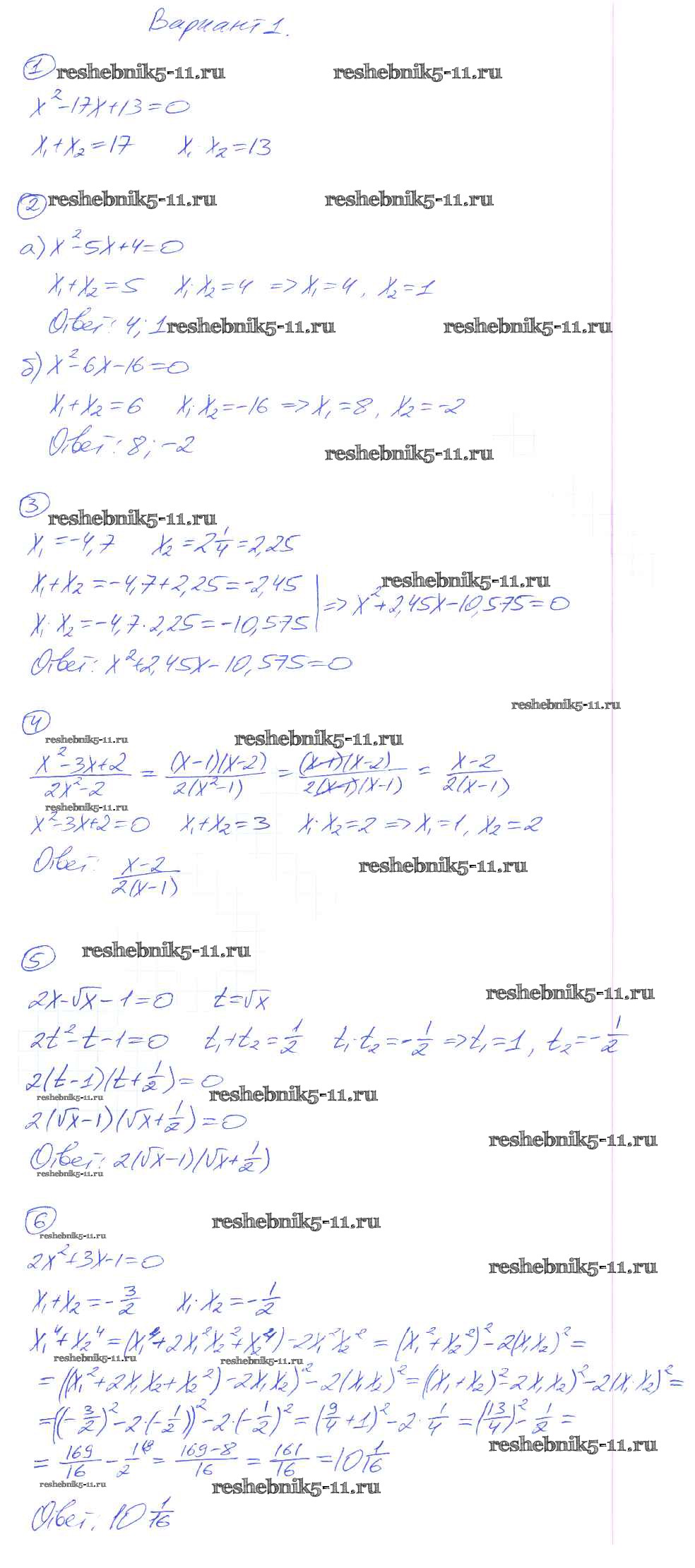 Готовая домашняя работа с ответами по Алгебре за 8 класс Попов Дидактические материалы УМК Экзамен 2014 ФГОС - СР-29. Теорема Виета вариант-1