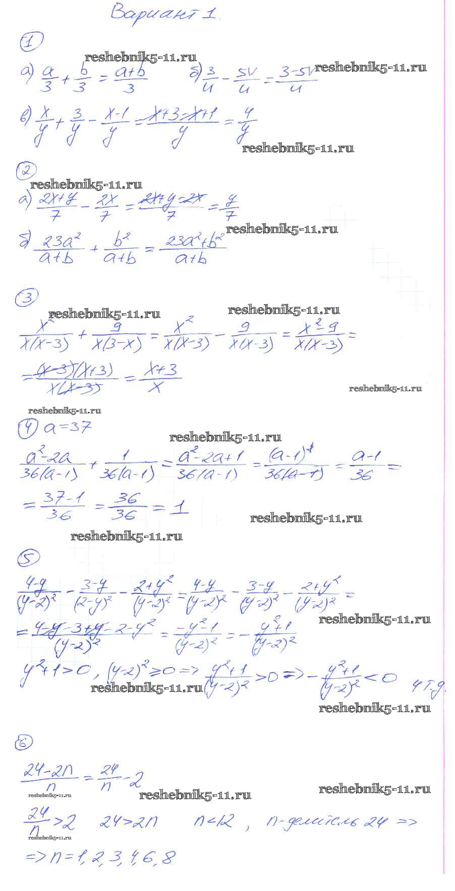 Готовая домашняя работа с ответами по Алгебре за 8 класс Попов Дидактические материалы УМК Экзамен 2014 ФГОС - СР-3. Сложение и вычитание алгебраических дробей с одинаковыми знаменателями вариант-1
