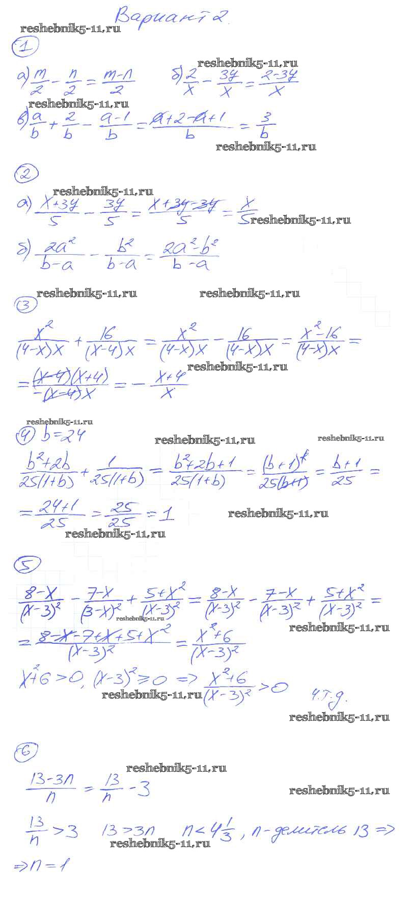 Готовая домашняя работа с ответами по Алгебре за 8 класс Попов Дидактические материалы УМК Экзамен 2014 ФГОС - СР-3. Сложение и вычитание алгебраических дробей с одинаковыми знаменателями вариант-2