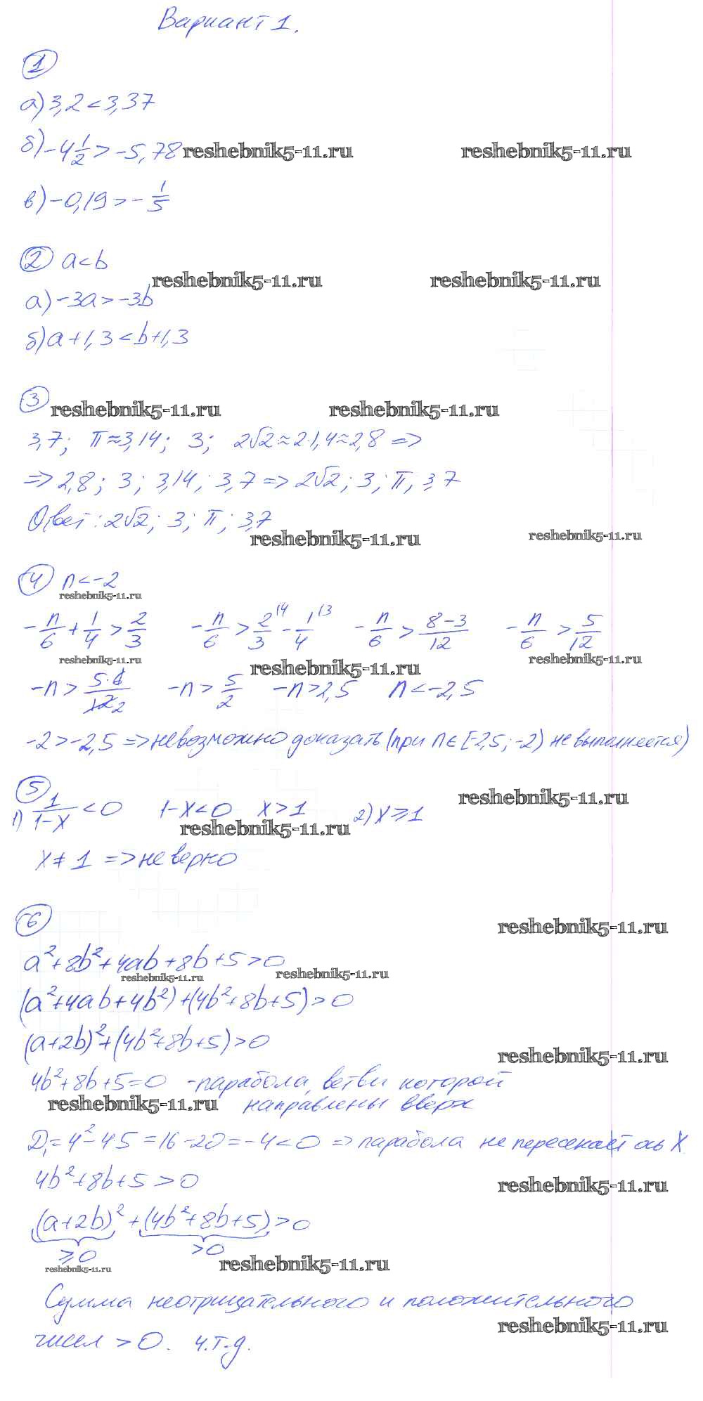 Готовая домашняя работа с ответами по Алгебре за 8 класс Попов Дидактические материалы УМК Экзамен 2014 ФГОС - СР-31. Свойства числовых неравенств вариант-1