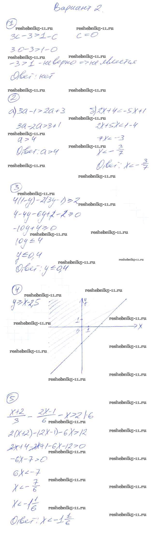Готовая домашняя работа с ответами по Алгебре за 8 класс Попов Дидактические материалы УМК Экзамен 2014 ФГОС - СР-33. Решение линейных неравенств вариант-2