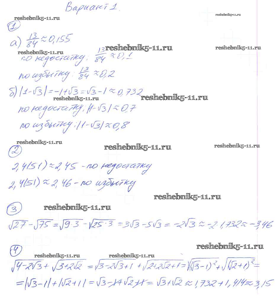 Готовая домашняя работа с ответами по Алгебре за 8 класс Попов Дидактические материалы УМК Экзамен 2014 ФГОС - СР-35. Приближённые значения действительных чисел вариант-1