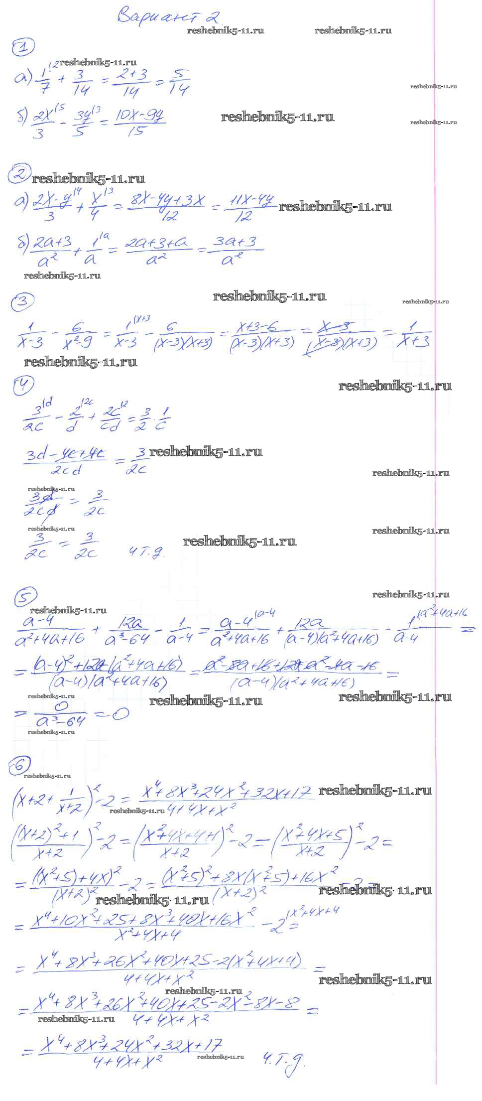 Готовая домашняя работа с ответами по Алгебре за 8 класс Попов Дидактические материалы УМК Экзамен 2014 ФГОС - СР-4. Сложение и вычитание алгебраических дробей с разными знаменателями вариант-2