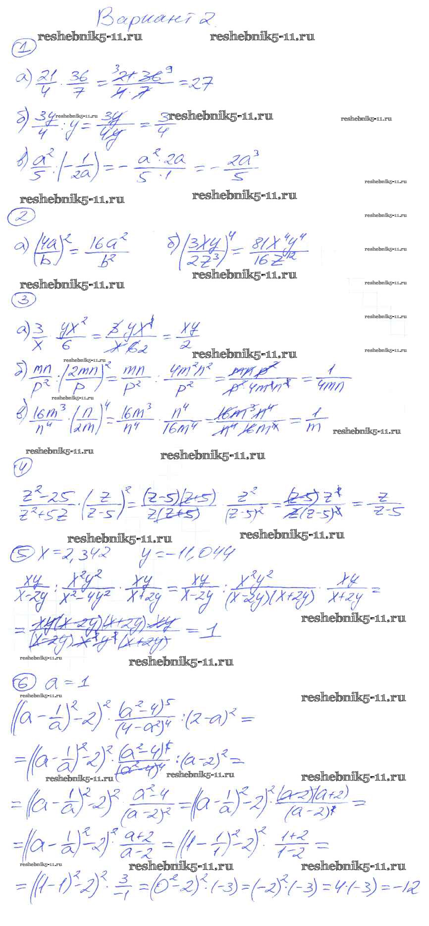 Готовая домашняя работа с ответами по Алгебре за 8 класс Попов Дидактические материалы УМК Экзамен 2014 ФГОС - СР-5. Умножение и деление алгебраических дробей. Возведение алгебраической дроби в степень вариант-2