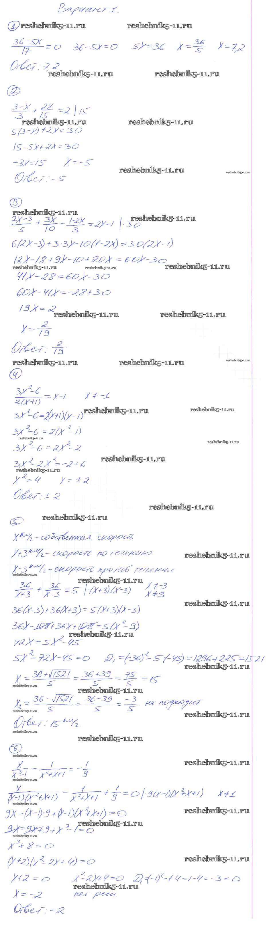 Готовая домашняя работа с ответами по Алгебре за 8 класс Попов Дидактические материалы УМК Экзамен 2014 ФГОС - СР-7. Первые представления о рациональных уравнениях вариант-1