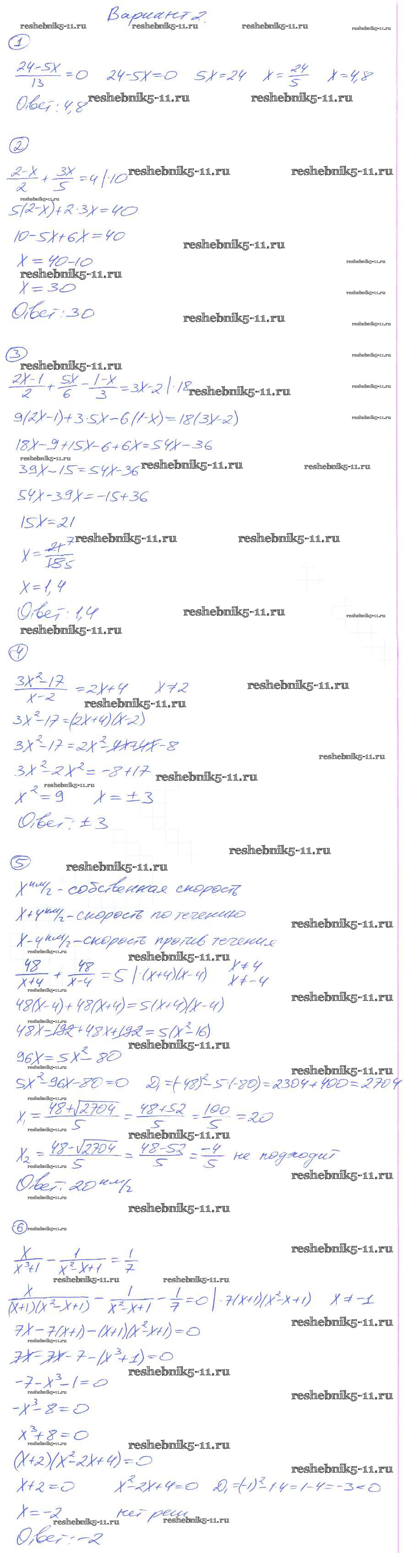 Готовая домашняя работа с ответами по Алгебре за 8 класс Попов Дидактические материалы УМК Экзамен 2014 ФГОС - СР-7. Первые представления о рациональных уравнениях вариант-2