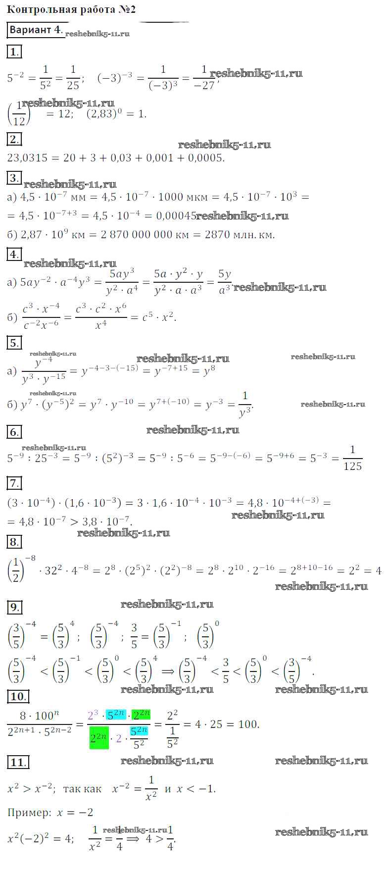 Готовая домашняя работа с ответами по Алгебре за 8 класс Кузнецова, Минаева, Рослова, Суворова Контрольные работы Просвещение 2016 ФГОС - Контрольная работа 2. Варианты 4