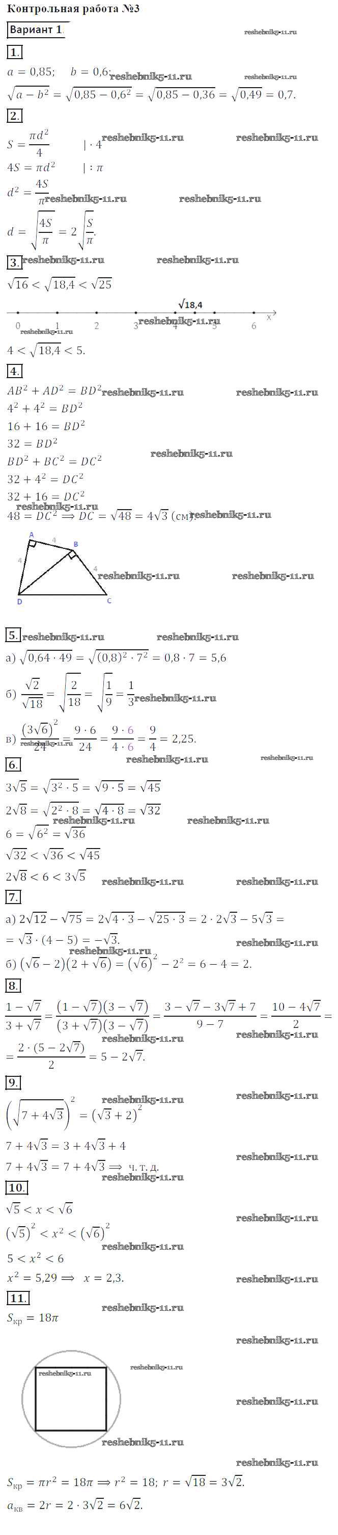 Готовая домашняя работа с ответами по Алгебре за 8 класс Кузнецова, Минаева, Рослова, Суворова Контрольные работы Просвещение 2016 ФГОС - Контрольная работа 3. Варианты 1