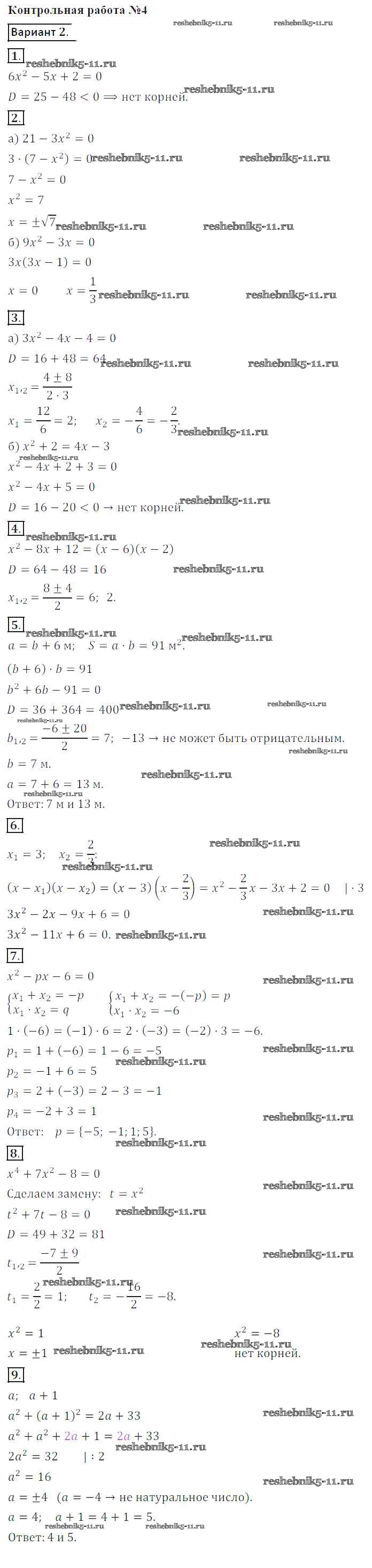 Готовая домашняя работа с ответами по Алгебре за 8 класс Кузнецова, Минаева, Рослова, Суворова Контрольные работы Просвещение 2016 ФГОС - Контрольная работа 4. Варианты 2