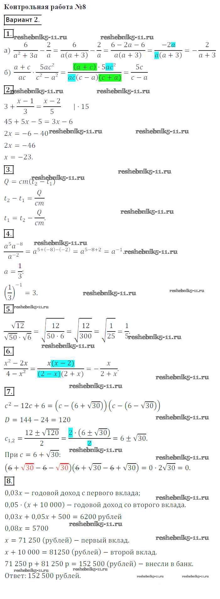 Готовая домашняя работа с ответами по Алгебре за 8 класс Кузнецова, Минаева, Рослова, Суворова Контрольные работы Просвещение 2016 ФГОС - Контрольная работа 8. Варианты 2