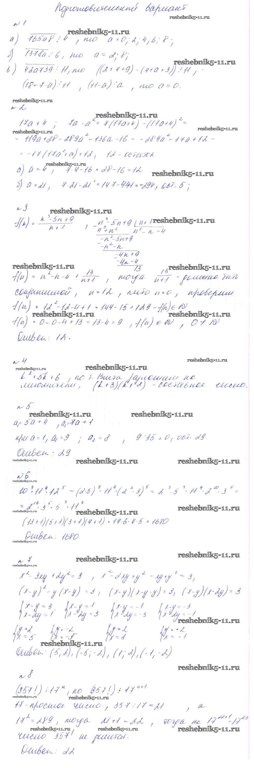 Готовая домашняя работа с ответами по Алгебре за 8 класс Феоктистов Дидактические материалы Мнемозина 2013 ФГОС - КР-2. Целые числа. Делимость чисел подготовительный вариант