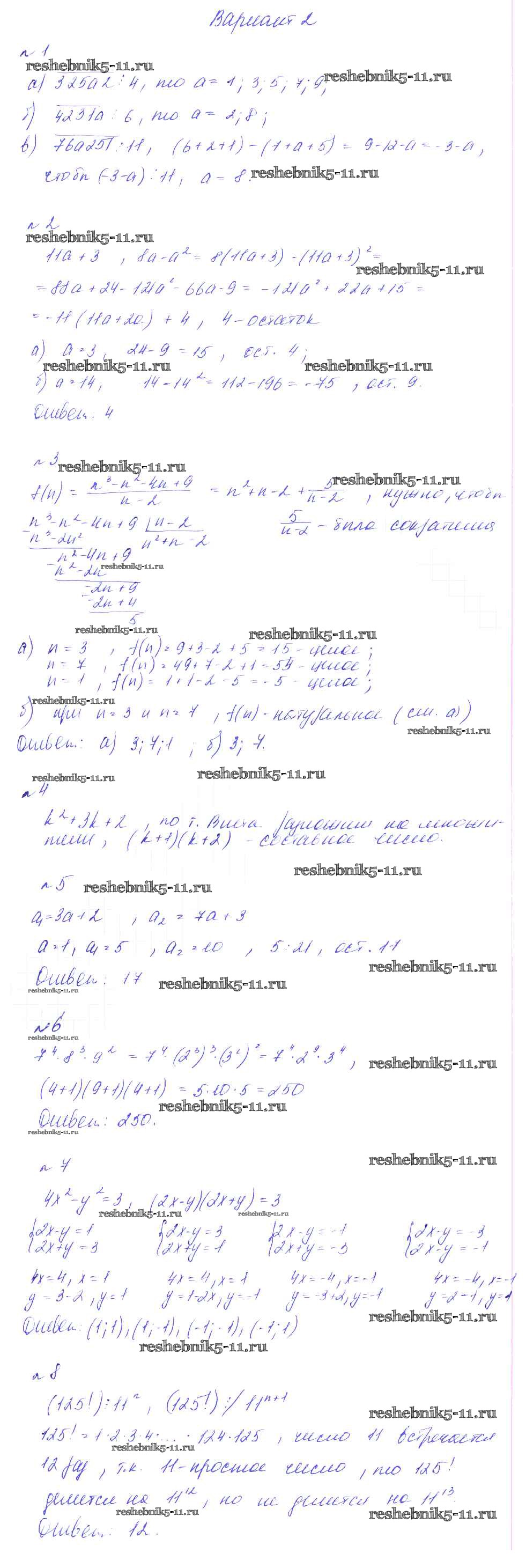 Готовая домашняя работа с ответами по Алгебре за 8 класс Феоктистов Дидактические материалы Мнемозина 2013 ФГОС - КР-2. Целые числа. Делимость чисел вариант 2