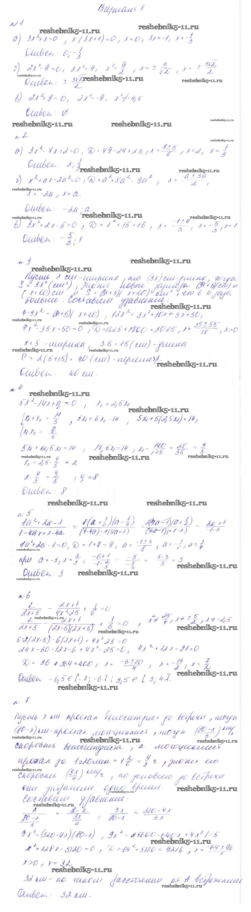 Готовая домашняя работа с ответами по Алгебре за 8 класс Феоктистов Дидактические материалы Мнемозина 2013 ФГОС - КР-4. Квадратные уравнения вариант 1