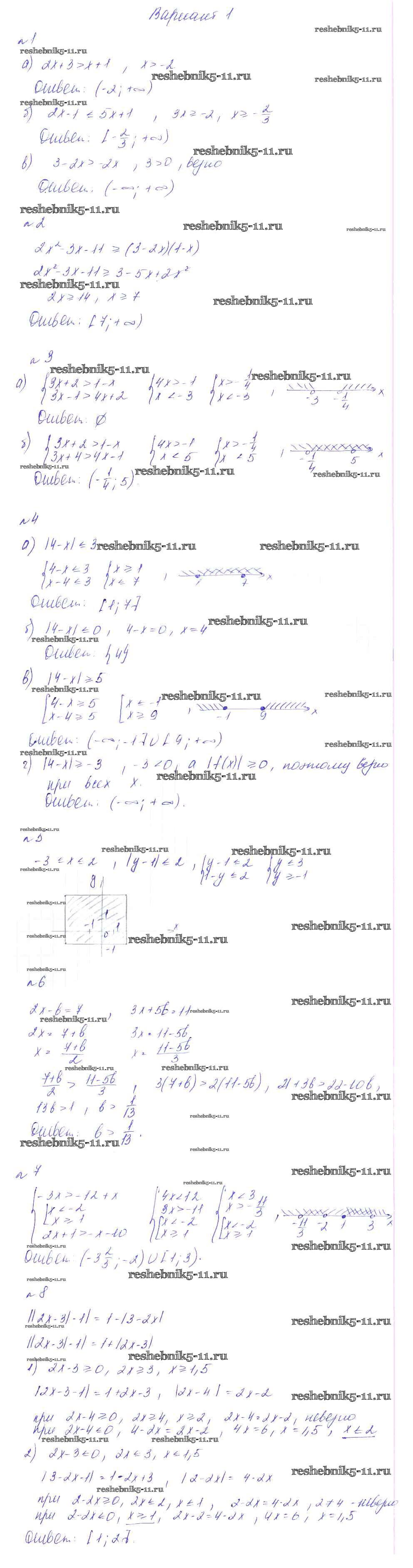 Готовая домашняя работа с ответами по Алгебре за 8 класс Феоктистов Дидактические материалы Мнемозина 2013 ФГОС - КР-5. Неравенства вариант 1