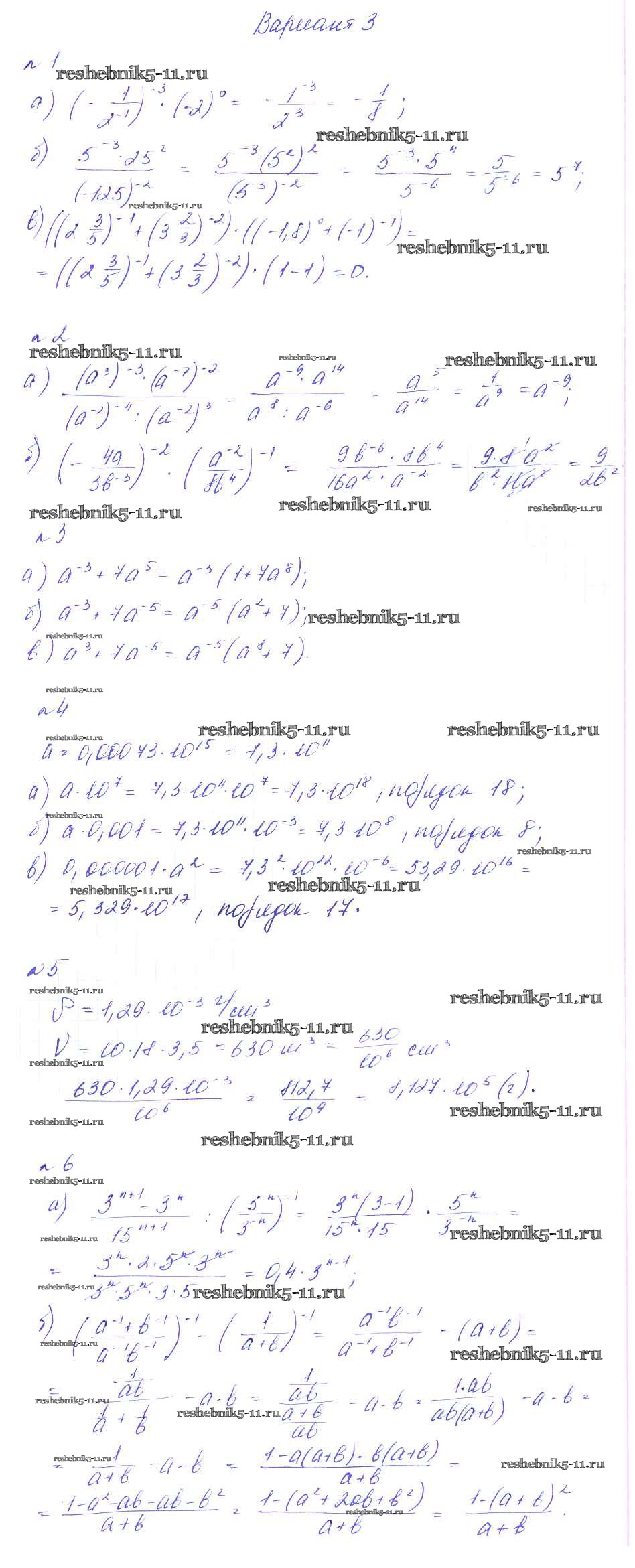 Готовая домашняя работа с ответами по Алгебре за 8 класс Феоктистов Дидактические материалы Мнемозина 2013 ФГОС - КР-6. Степень с целым показателем вариант 3