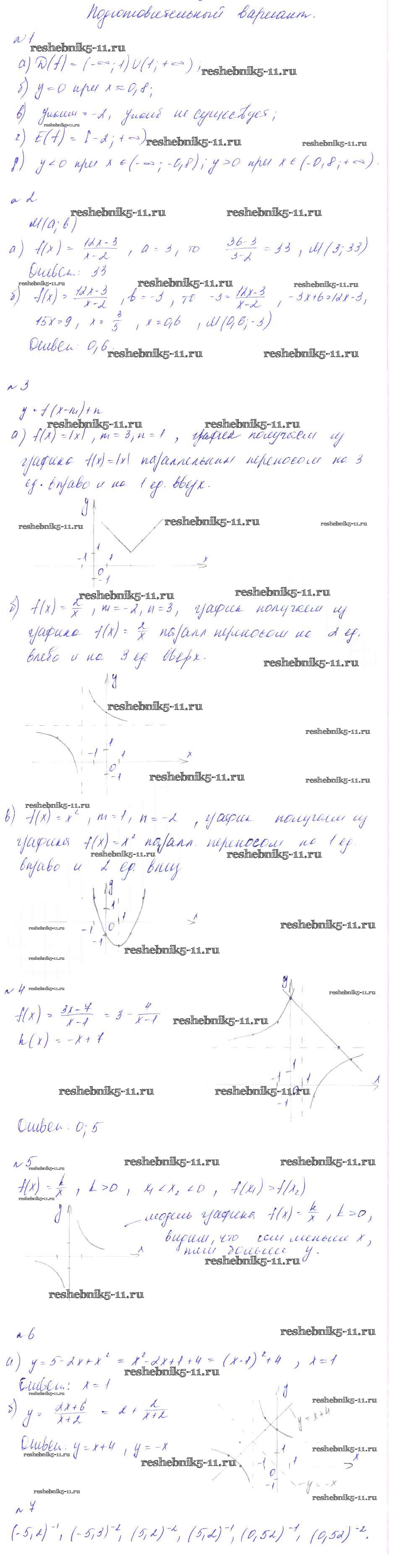 Готовая домашняя работа с ответами по Алгебре за 8 класс Феоктистов Дидактические материалы Мнемозина 2013 ФГОС - КР-7. Функции и графики подготовительный вариант