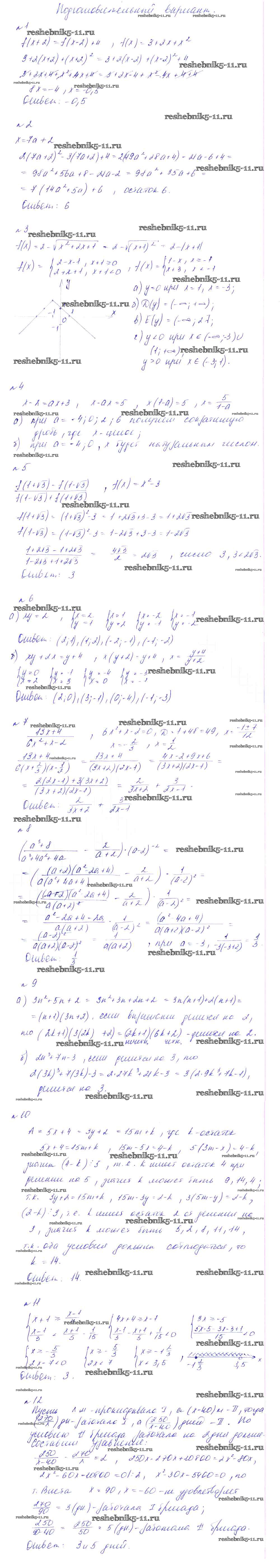Готовая домашняя работа с ответами по Алгебре за 8 класс Феоктистов Дидактические материалы Мнемозина 2013 ФГОС - Итоговая КР подготовительный вариант