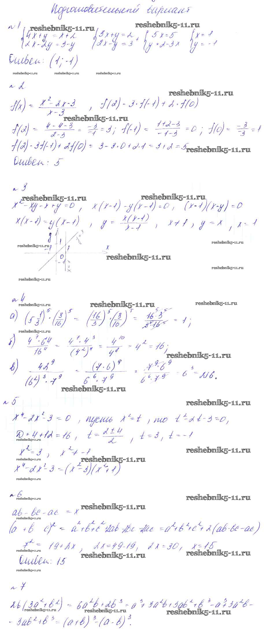 Готовая домашняя работа с ответами по Алгебре за 8 класс Феоктистов Дидактические материалы Мнемозина 2013 ФГОС - СР-1. Повторение материала 7-го класса подготовительный вариант